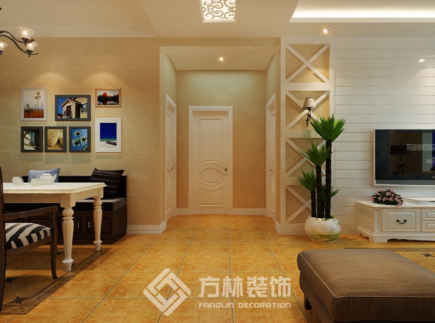 設計理念:本房主人為年輕的三口之家,女主人特別喜歡田園風格,設計師在和業(yè)主溝通之后,通過地面波打線以及斜鋪的手法,把客廳和餐廳實現(xiàn)了虛擬分區(qū),使得原本不大的客廳,視覺上增加了層次,增加了空間感.而通過暖色的硅藻泥營造出一個溫馨的家庭環(huán)境,讓孩子在這個環(huán)境里快樂的成長。