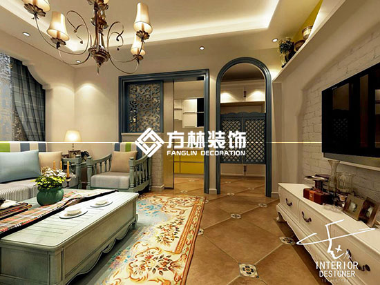 沈陽金地鉑悅地中海風(fēng)格56平戶型裝修效果圖,方林裝飾出品。