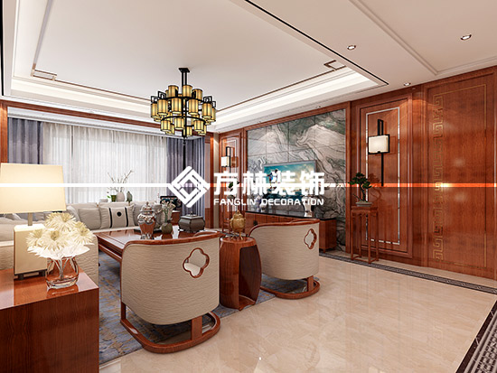 案例:遠(yuǎn)洋公館182平裝修效果圖【新中式】