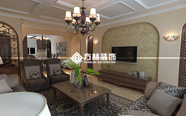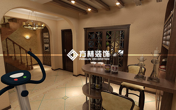 中海城虹郡147平加地下室裝修效果圖,美式地中海風格。方林出品。