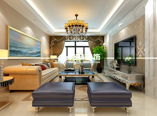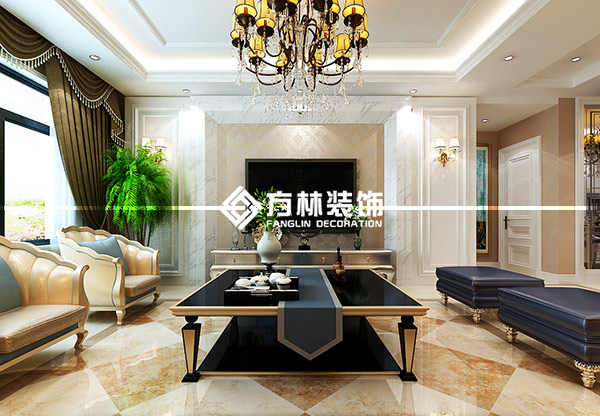 保利大都會143平簡歐風格裝修效果圖,方林出品,本案例僅展示客廳。