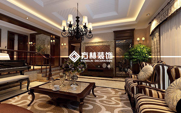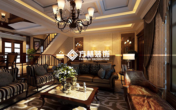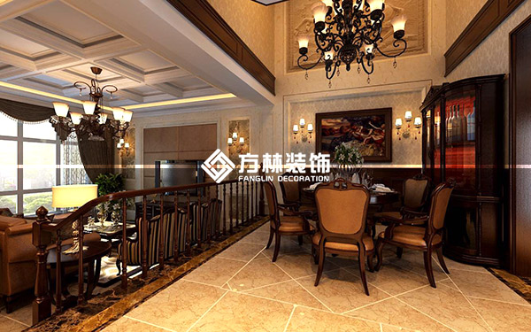 中海龍灣400平聯(lián)排別墅-美式風(fēng)格裝修效果圖,方林裝飾出品。