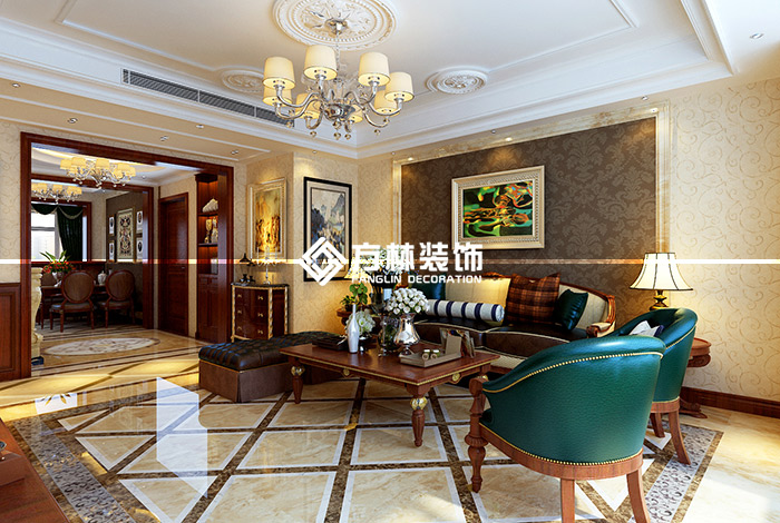 金地檀府歐式135三室裝修效果圖,沈陽方林裝飾出品。