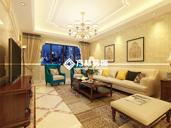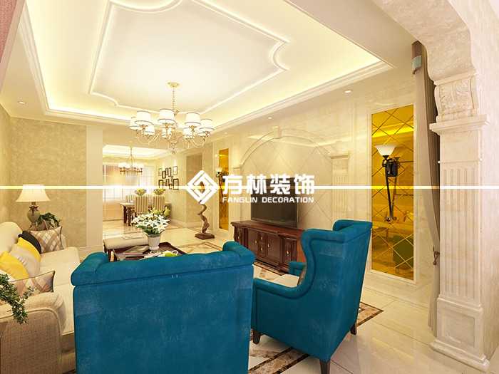 中?党--簡歐風(fēng)格-130平--3室裝修效果圖,方林裝飾出品。
