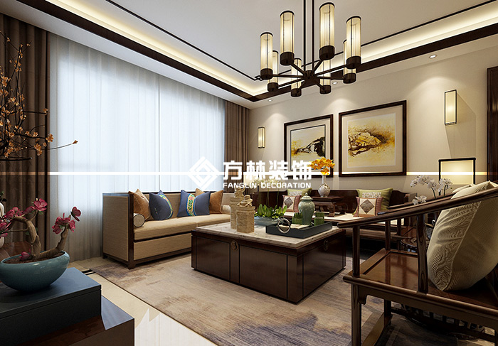 中鐵香湖130裝修設(shè)計,新中式風格,方林裝飾出品,電話同微信4007651918
