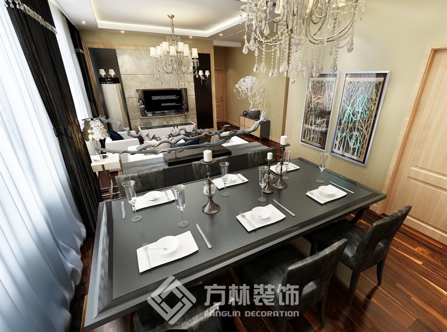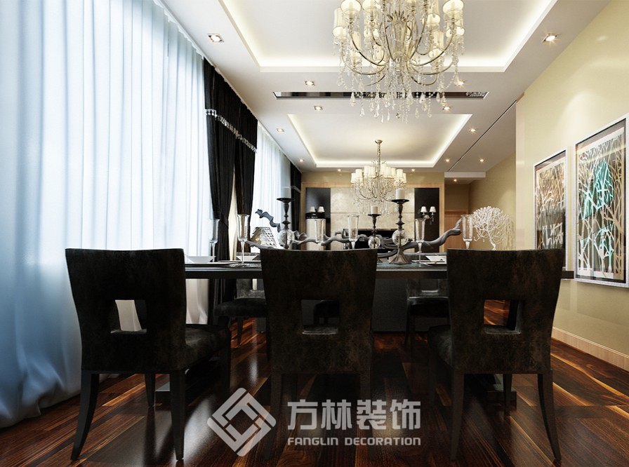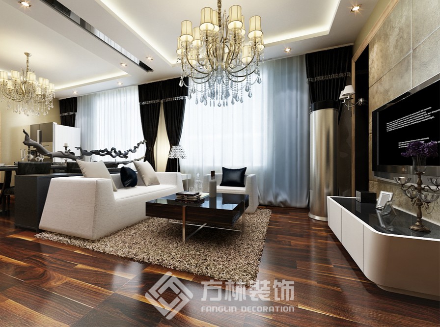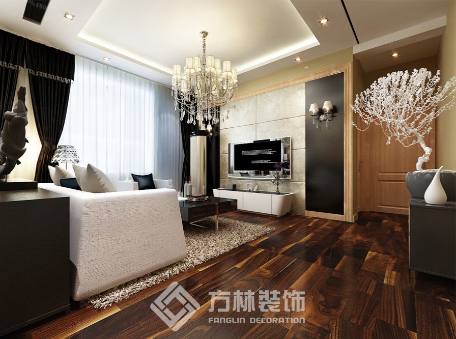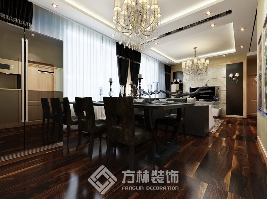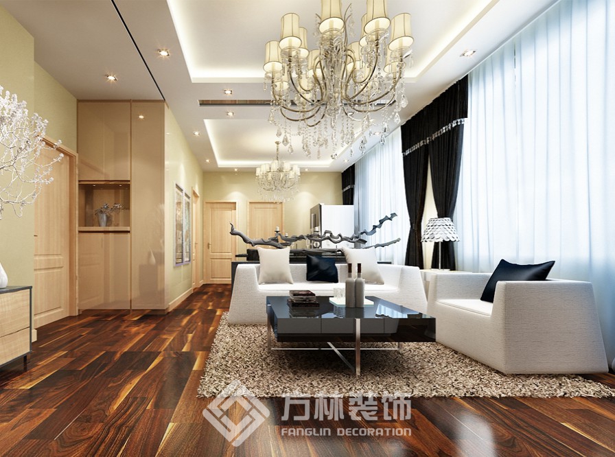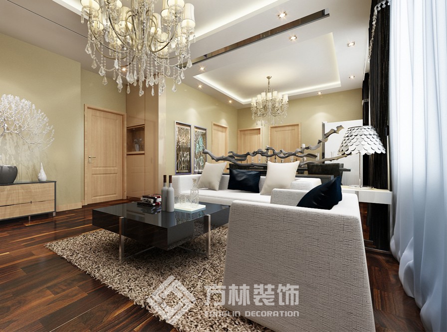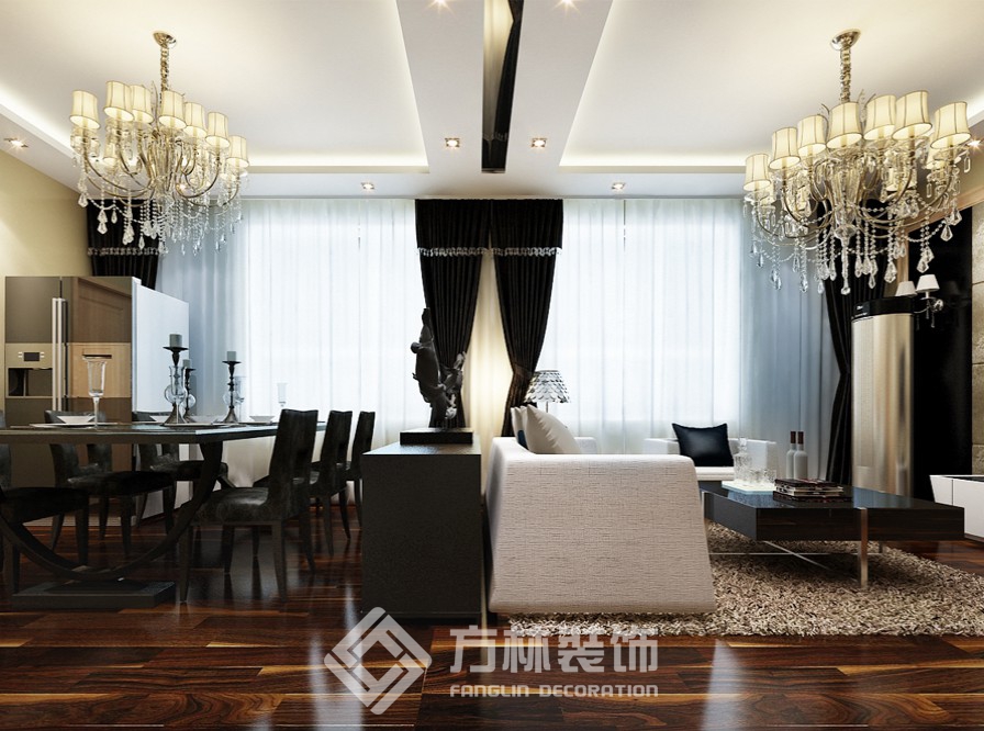 設(shè)計理念:業(yè)主為沈飛年輕工程師,為人比較嚴謹,此房屬于改善性住房,業(yè)主偏向舒適性和效果.設(shè)計師充分利用了客廳和餐廳在一個空間的優(yōu)勢,采用兩側(cè)吊邊棚的手法,把客廳和餐廳分為兩個空間.