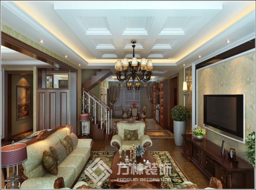案例:保利海上五月花280平美式田園風格裝修效果圖