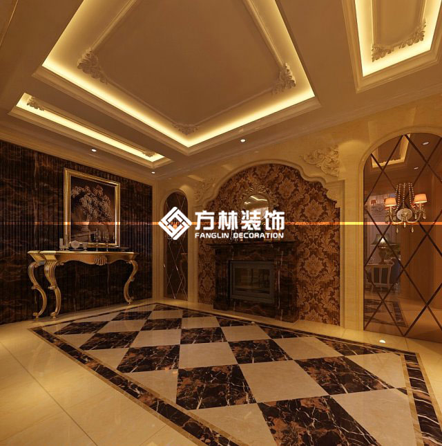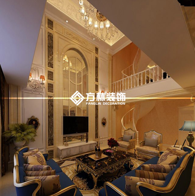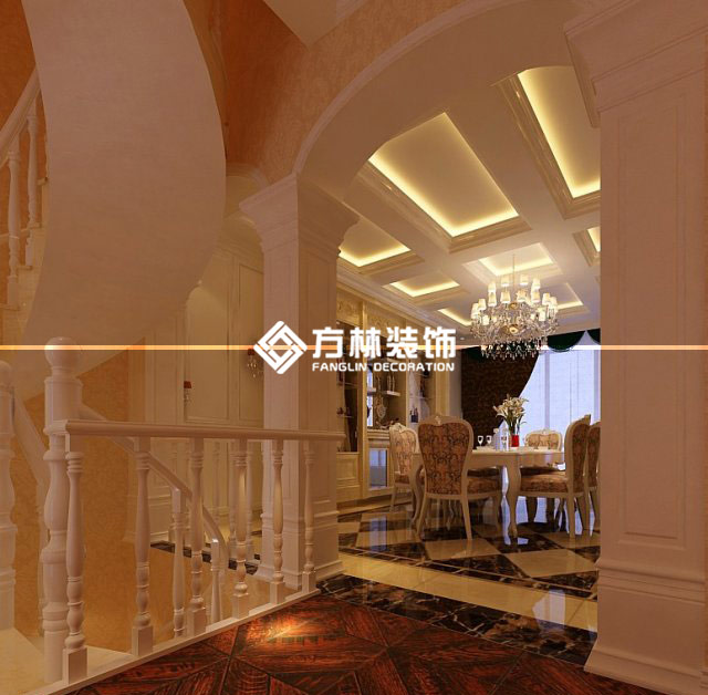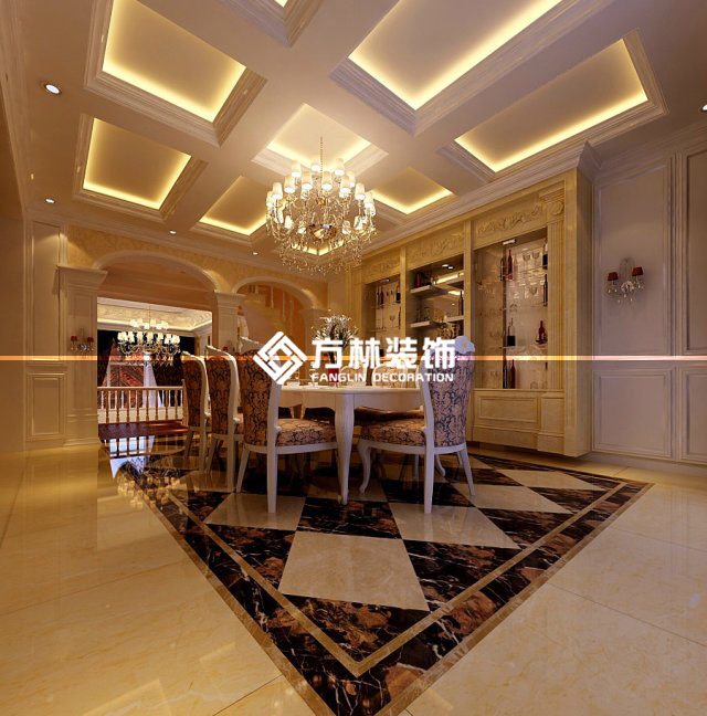 三盛頤景園350平別墅裝修效果圖,中式風格,方林裝飾出品。