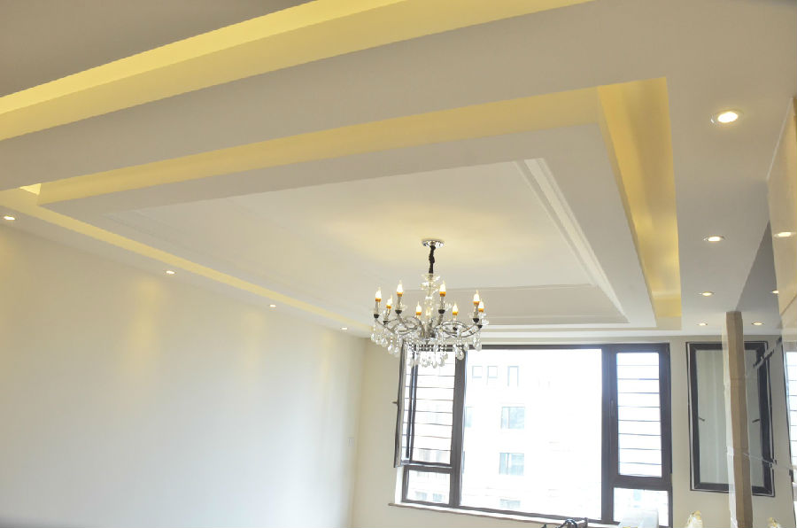 客廳頂棚造型簡潔大方,燈槽的施工工藝精工巧妙,燈具的搭配與整個房間風格相呼應(yīng)。