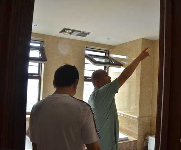 董事長檢查衛(wèi)生間裝修細節(jié)情況。