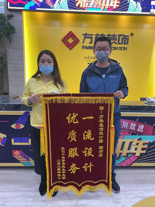 融創(chuàng)中央學(xué)府(園區(qū))業(yè)主親自到公司送來(lái)錦旗,感謝所有方林裝飾工作人員的工作認(rèn)真、負(fù)責(zé),工藝技能的精湛,他們?nèi)胰硕己軡M(mǎn)意 讓我們共同努力,用心服務(wù)好每一位客戶(hù)!