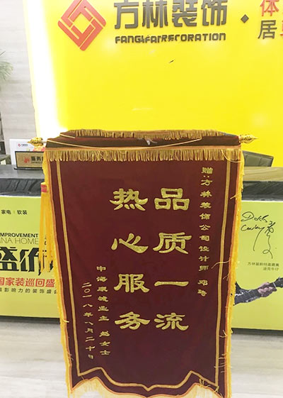 方林裝飾就是好 表?yè)P(yáng)感謝少不了 大家一起來(lái)努力 創(chuàng)造輝煌好成績(jī) (中?党牵I(yè)主親自到公司送來(lái)錦旗,感謝所有方林工作人員的工作認(rèn)真、負(fù)責(zé),工藝技能的精湛。